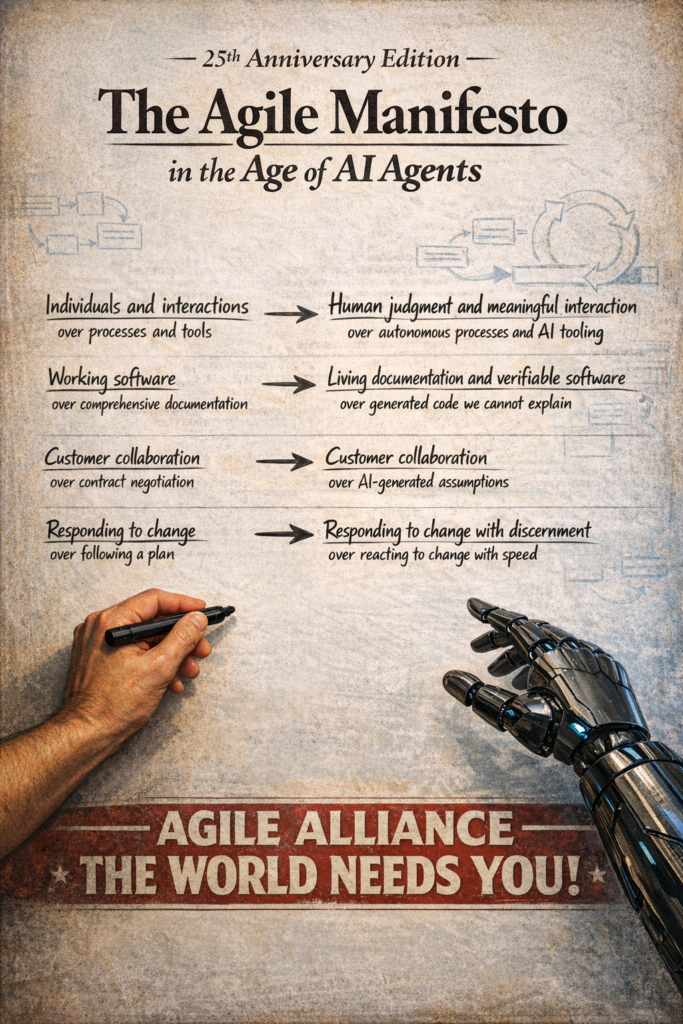 The original manifesto’s deepest insight was never about sprints or standups or story points. It was that software development is fundamentally a human activity: one that requires judgment, communication, and the willingness to change course. That remains more true than ever, especially when partnering with a very powerful, very fast, very confident collaborator who doesn’t always know what it’s talking about.
